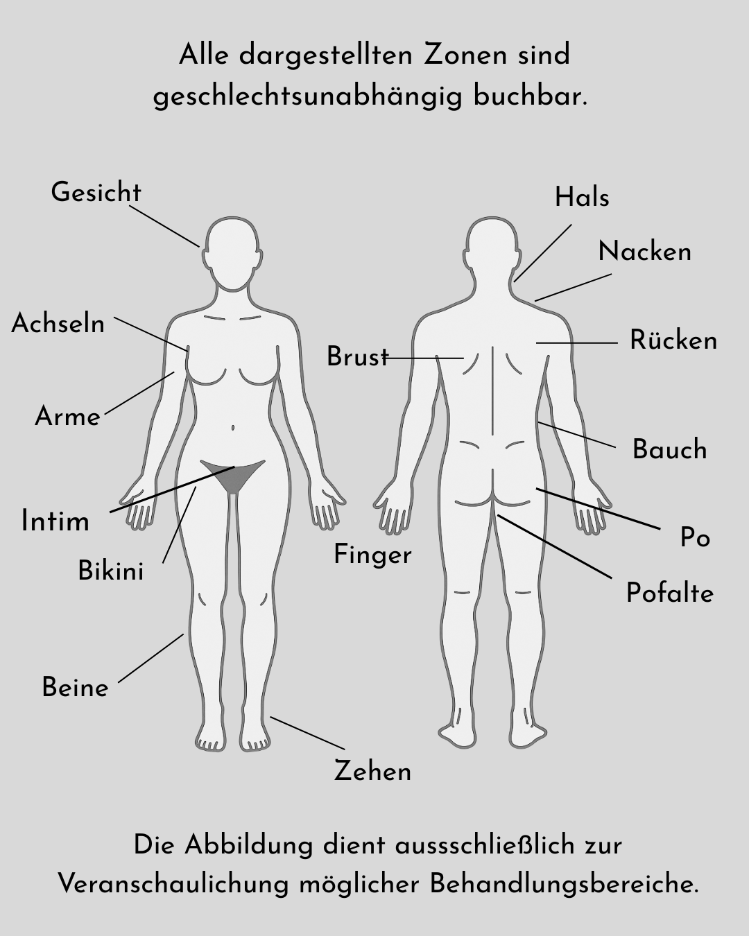 - Verwenden Sie kein Deo oder Cremes im Behandlungsareal